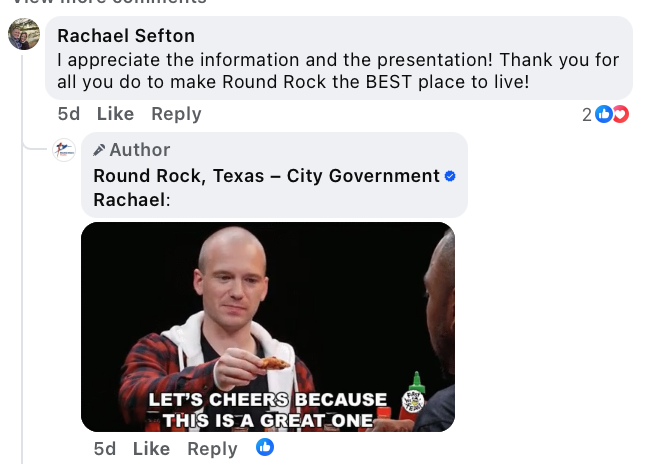 To that end, I share a recent example from my friend and former colleague Austin Ellington and the team at the City of Round Rock, Texas. Their recent posts on the city’s proposed budget and tax rate—always contentious topics—show how government can engage directly, disagree constructively, and keep the focus on solutions instead of outrage.